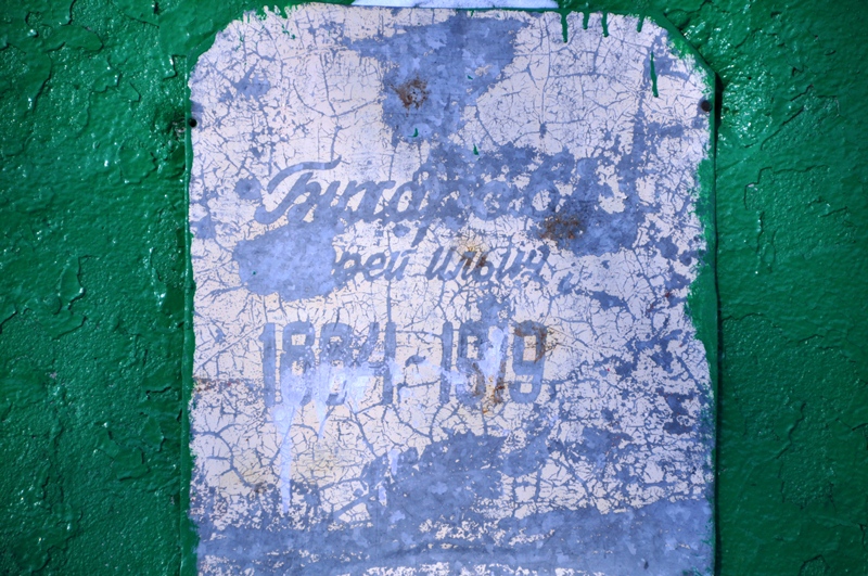 Здравствуйте Андрей! "Жестяная табличка" сохранившаяся на здании ни что иное как "страховая доска". Применялась в качестве рекламы (в основном). Была цветов Российского флага; кант - красный, фон белый и синяя полоса в центре таблички с надписью "1858" (дата основания С.Петербургского общества страхований). Надпись была выполнена золотым цветом. Применялись эти доски между 1896 и 1914 г.г. Т.е. по этой табличке можно только предполагать, что здание построено либо в самом конце 19 либо в самом начале 20 столетия.
