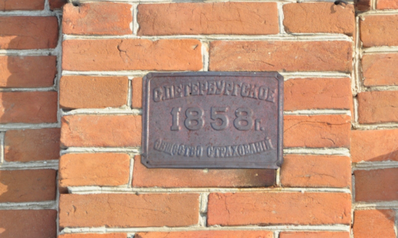 На дату строительства указывает сохранившаяся до наших дней жестяная табличка - "С. Петербургское общество страхований 1858 г."