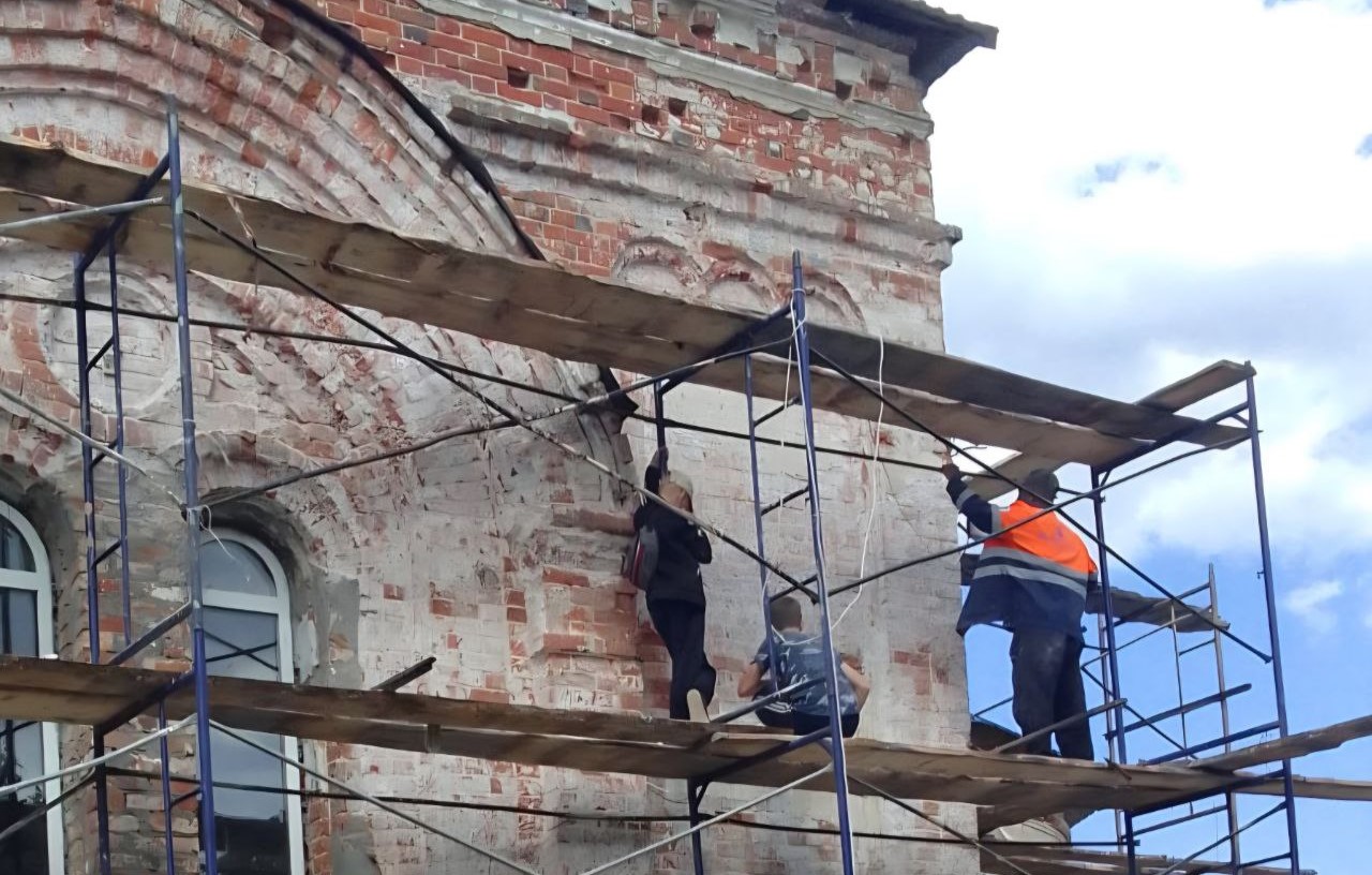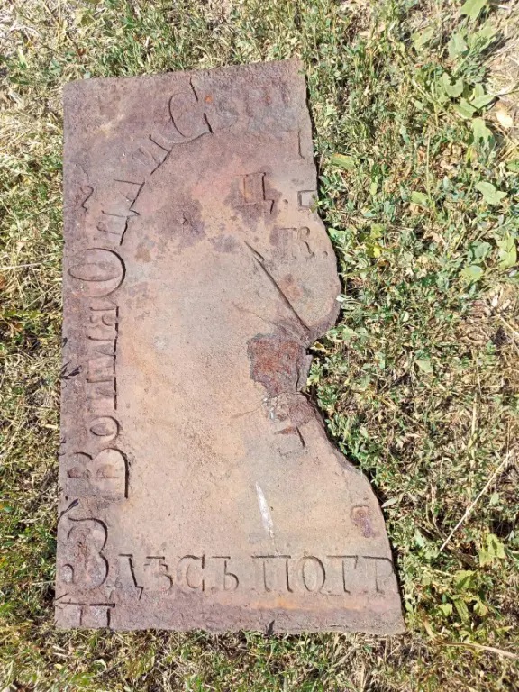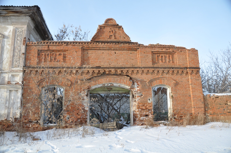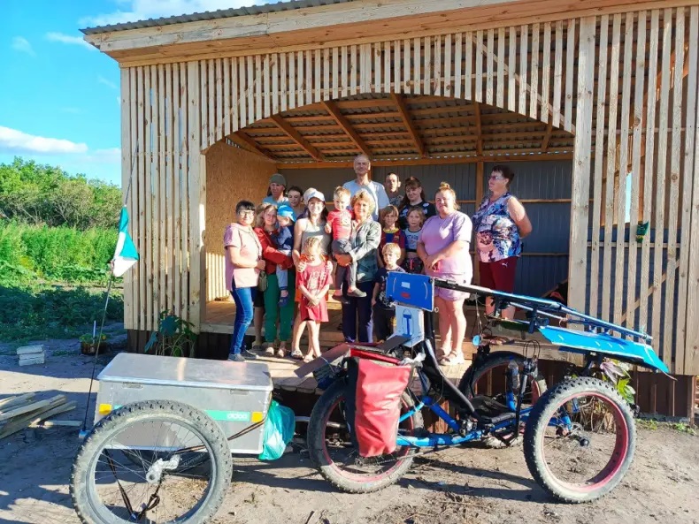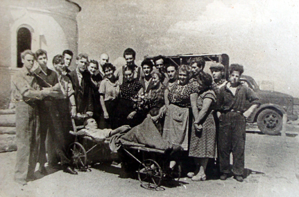 Л. И. Куликов у Половинской церкви с местной молодёжью. Фото хранится в краеведческом музее Целинного района.